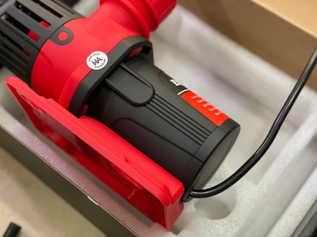 Sản phẩm sở hữu thiết kế tông đỏ– đen nổi bật, chắc chắn, nhỏ gọn nhưng mạnh mẽ. Cấu trúc cánh quạt kín