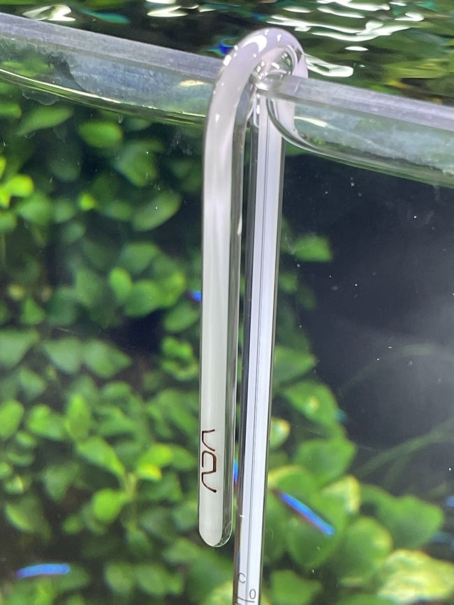 • Thiết kế tối giản, sang trọng: Dạng ống thủy tinh uốn cong chữ J, treo gọn gàng trên thành bể mà không cần nút hít (suction cup), đảm bảo tính thẩm mỹ cao, không làm vướng tầm nhìn và không phá vỡ vẻ đẹp tự nhiên của bể.